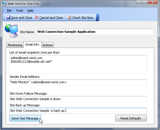 Web Monitor Site Info Form | Web Monitor Configuration Form© West Wind Technologies, 2018 • Updated: 12/27/13