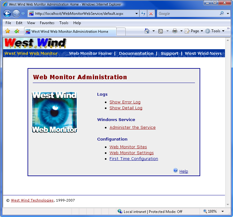 The Web Monitor Web Interface provides remote access to Web Monitor for Administration and reviewing log information. The Web Interface requires that IIS is installed and that it runs on the machine where Web Monitor is installed and running. Here are the tasks that you can accomplish through this interface: