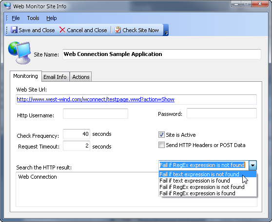 The Web Monitor Main Form | Web Monitor Configuration Form | Web Monitor Site Info Form | Web Monitor Log Viewer© West Wind Technologies, 2018 • Updated: 08/25/15