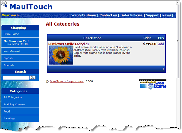 Since we previously added only a single item and put it in the Paintings category to get to it we can click either on the All Categories or Painting categories to see and select the item. When you do you'll see a view like this: