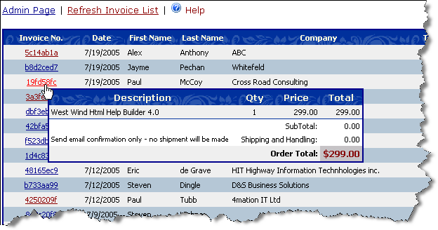 The above display can be accomplished without any code in ShowHtmlAtMousePosition mode - you simply set a couple properties and inject a querystring override into the datagrid template column.
