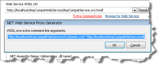Enter extra command line parameters allow you to add additional command line options for wsdl.exe.