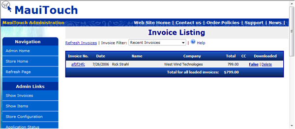 then click on the Show Invoices Link. You should see a form like this: