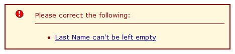 UserMessage | The message to display above the error message. For example: Please correct the following: |