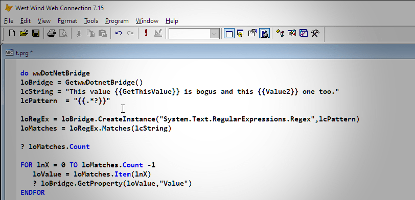 So, once we know what needs to be called, we need to translate the .NET RegEx code to FoxPro.