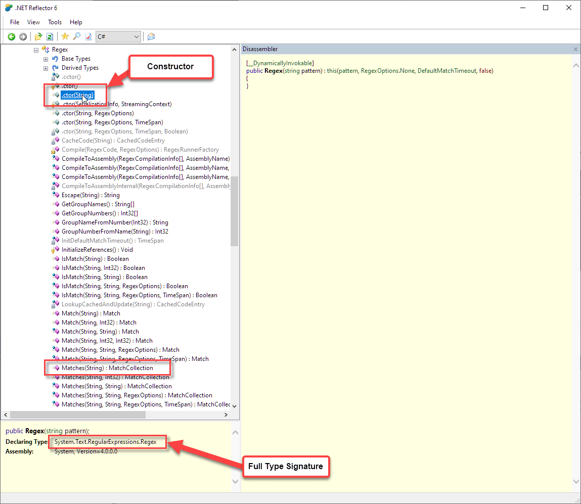 What's nice about using LinqPad (or a project in Visual Studio) is that you get IntelliSense and you can hover over a type or a method and see the full type information or method signature. In the screen shot above you can see me hover over the Regex type and it gives me the full type signature of System.Text.RegularExpressions.Regex which you need to use in a call to CreateInstance().